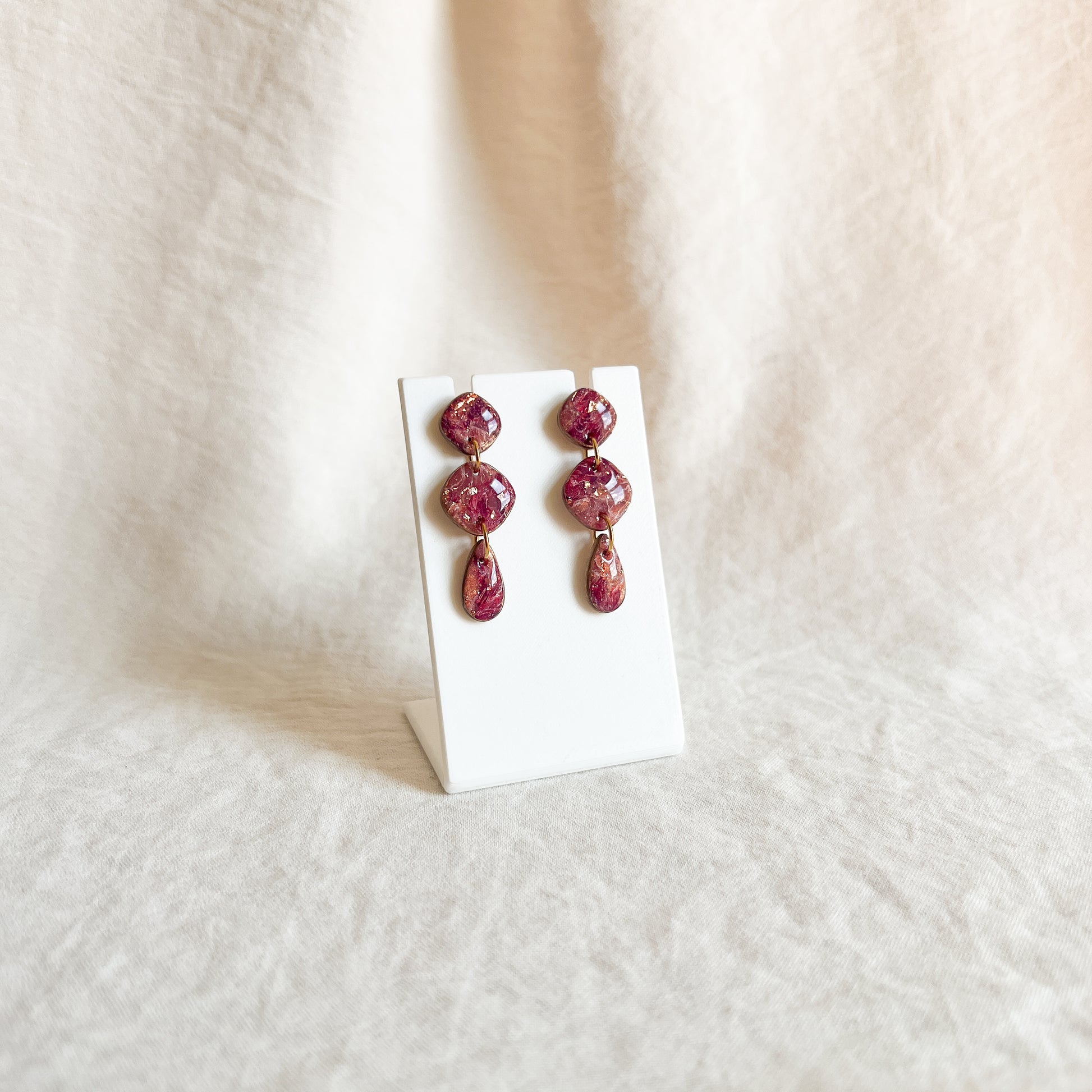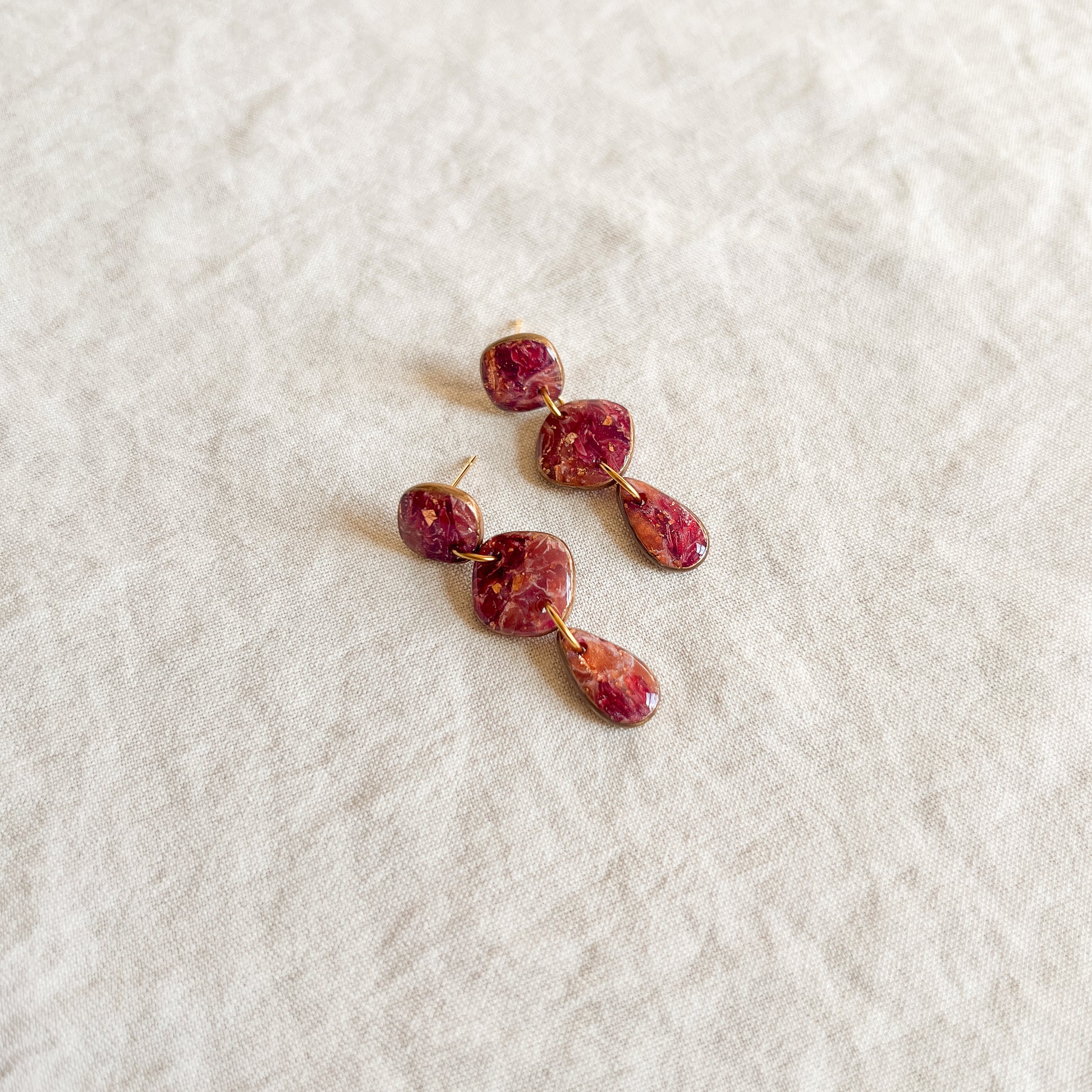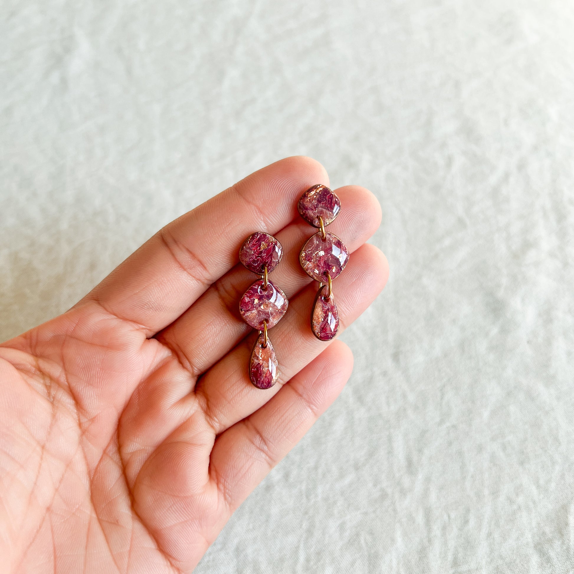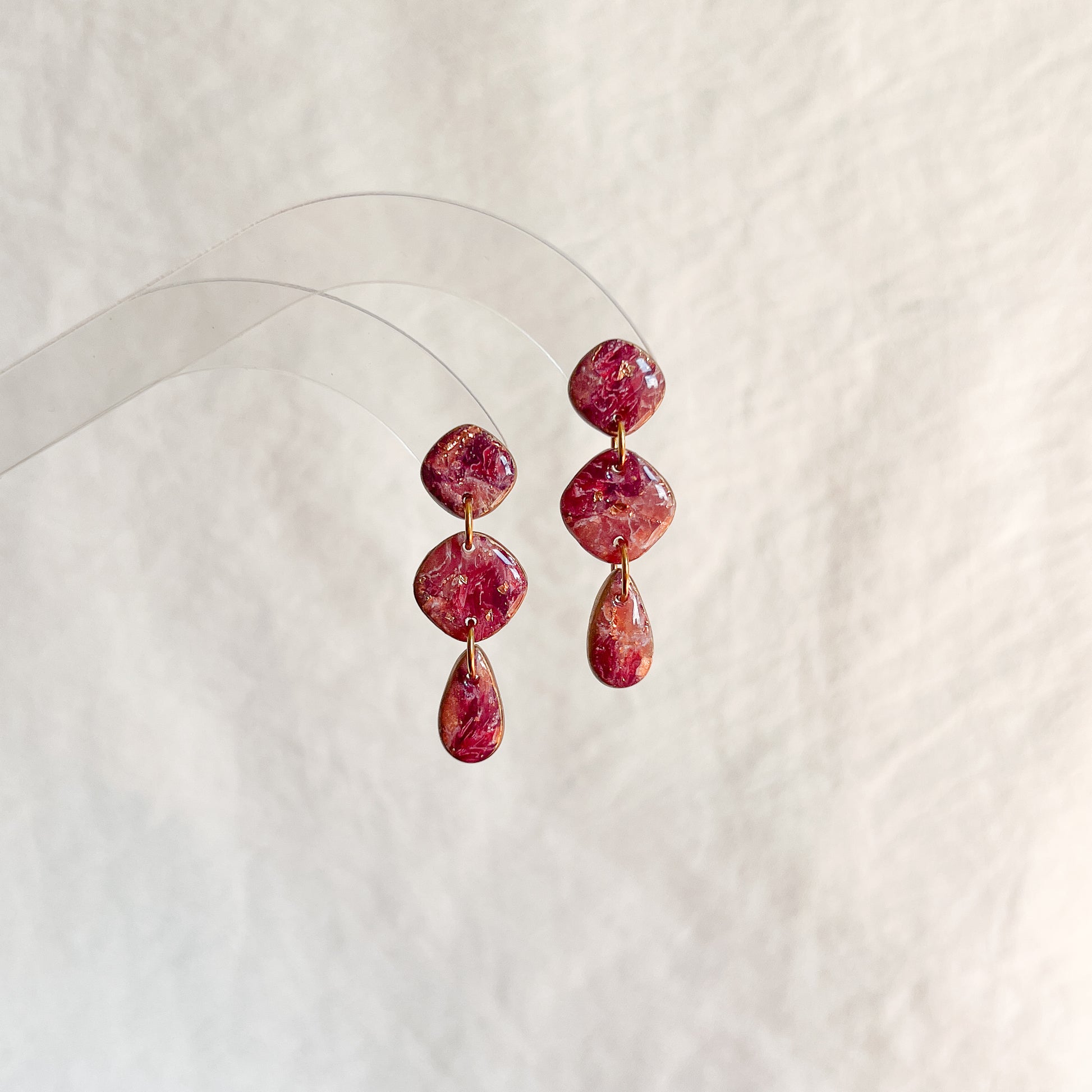 Materials: Polymer clay, stainless steel components, alcohol ink, resin, acrylic pain