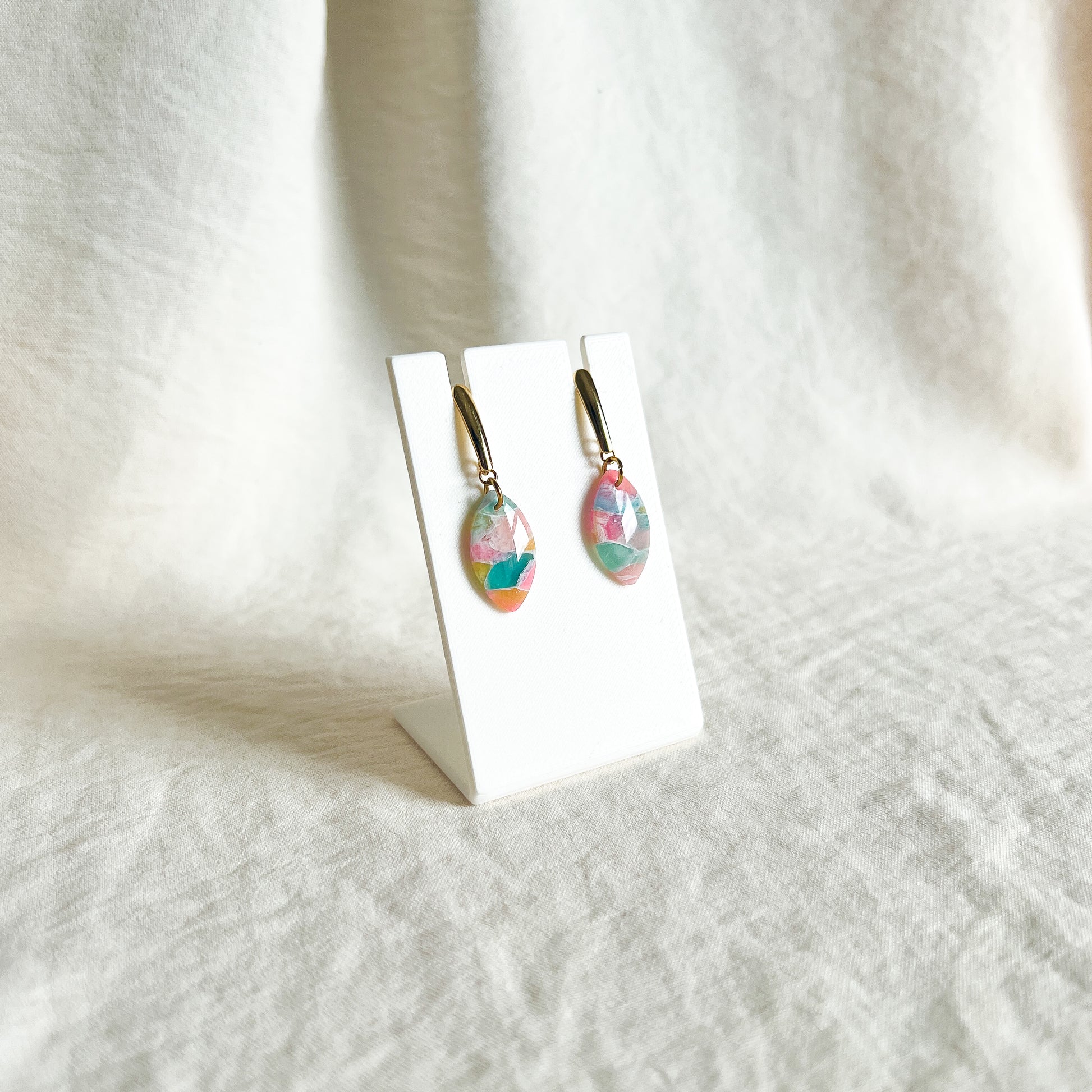 Materials: Polymer clay, stainless steel components, resin, acrylic paint